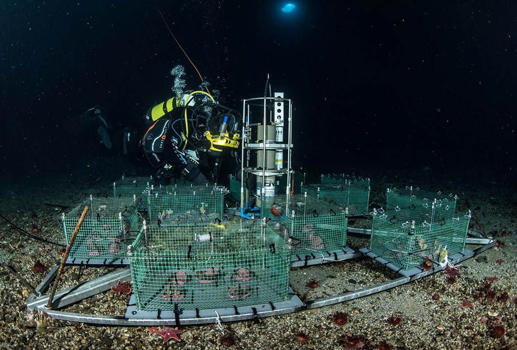 Dopo essere state marcate con sostanze non tossiche ad indicare l’inizio dell’esperimento, le specie sono state riposizionate sul fondale di Tethys Bay in dodici gabbie dotate di sensori di luce e temperatura e posizionate all’interno di una struttura in alluminio realizzata dai tecnici della base antartica italiana “Mario Zucchelli”. Inoltre, una sonda collocata nell’intelaiatura registrerà per un anno i principali dati ambientali (pH, temperatura, ossigeno, intensità luminosa, conducibilità).