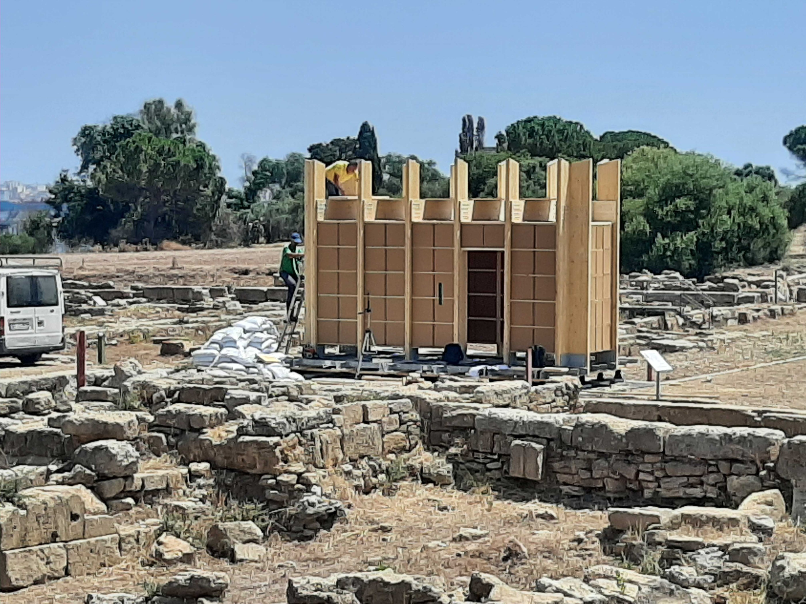 Per testare questo sistema di costruzione, è in corso di montaggio un prototipo in scala al vero all’interno del test site di Megara, che costituisce un piccolo Padiglione Esperenziale (così chiamato in quanto progettato per dare ai suoi visitatori un’esperienza aggiuntiva del sito).