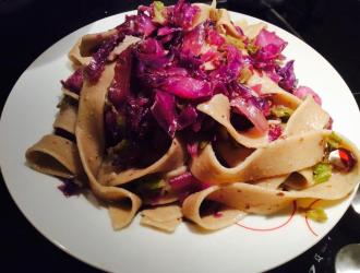 Pappardelle di grano siciliano o senza glutine bio e verza rossa e semi di lino: una ricetta che non è un semplice piatto di pasta ma che contiene anche tante sostanze nutrienti!