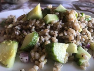 Fate cucinare l'orzo perlato, per due persone vanno bene 150 grammi. Una volta cotto fate raffreddare e poi condite a piacimento con le verdure che più vi piacciono.
