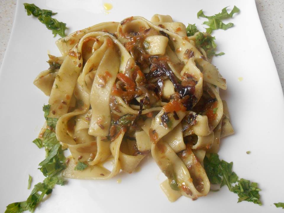 Pappardelle con verdure e semi di lino